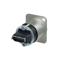 Connettore passante in flangia metallica di tipo D con sistema di aggancio sicuro. Nichel