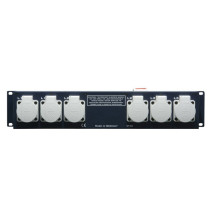 La ciabatta PROPORT 4 è ideale per la distribuzione della corrente elettrica in modo ordinato e mirato su palcoscenici, traverse e rig. Il robusto alloggiamento in metallo ha 4 prese IP54 con contatto di protezione dotate di coperchio, una presa Power Twist I/O azzurra e una bianca per l'ingresso e l'uscita della corrente e due raccordi filettati M10 per il montaggio a sospensione e fisso.