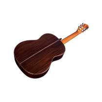 MODELLO 20 Tavola in cedro canadese massello, fasce e fondo in palissandro del Madagascar massello, manico in cedro, tastiera mm 650 in ebano. Corredata di astuccio in vetroresina.