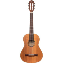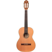 Chitarra classica. Top solido in cedro. Fasce e fondo in mogano. Manico in mogano. Tastiera in palissandro indiano. Capotasto in osso 52mm. Meccaniche placcate in nickel. Binding in palissandro indiano. Scala 650mm. Finitura opaca.