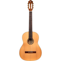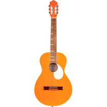 Chitarra classica iniziazione 4/4. Truss rod regolabile. Tavola, fascia e cassa in tiglio. Manico in betulla. Tastiera e ponte in hardwood. Custodia inclusa. Ideale per un primo contatto con la chitarra classica. Finitura naturale.